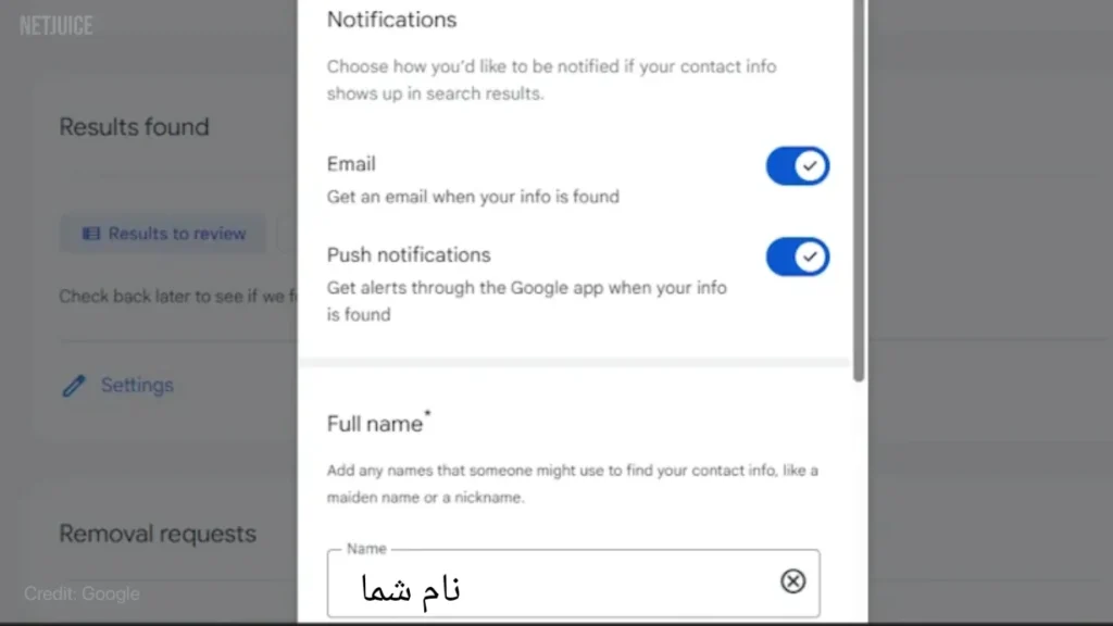 اولین قدم این است که متوجه شوید آیا اصلاً اطلاعاتتان در نتایج جستجوی گوگل وجود دارد یا نه. برای این کار، گوگل صفحهای به نام Results About You دارد. وارد حساب گوگل خود شوید، به این صفحه بروید و اطلاعات خود مثل شماره تماس، ایمیل و آدرس را وارد کنید.